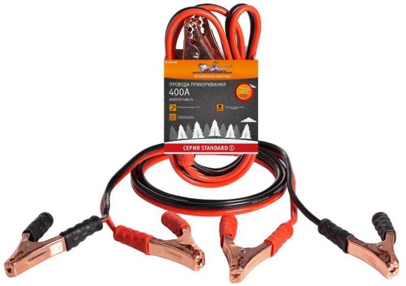 Основной задачей при разработке данных проводов прикуривания мы ставили сделать недорогое изделие, которое при сильном морозе (-40С) поможет завести автомобиль с севшей АКБ. При этом оплетка не потрескается и провод не развалится после первого использования. Мы сделали многожильный токонесущий кабель в морозостойкой оплетке с металлическими крокодилами. Использовали простую, информативную и яркую картонную упаковку, которая помогла существенно снизить цену.