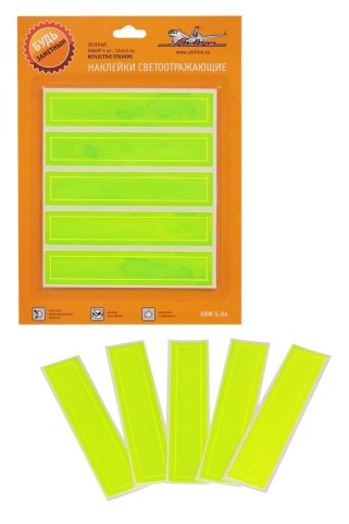 Набор из пяти наклеек со световозращающим покрытием. Предназначены для крепления на различных предметах и одежде для улучшения видимости на дальнем расстоянии в темное время суток.