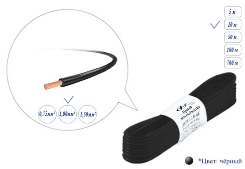 Провод монтажный 1,0мм2 пучок 10м ПГВА черный