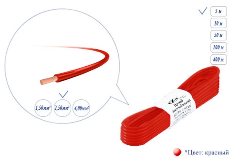 Провод монтажный 2,5мм2 пучок 5м ПГВА красный