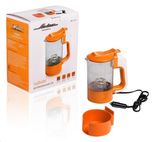 Чайник автомобильный 12V прозрачный/оранж. автомат. отключение