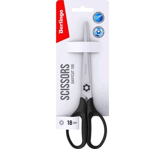 Ножницы Berlingo Easycut 100 18 см, европодвес DNn_18040 подходят для работы с бумагой и картоном.