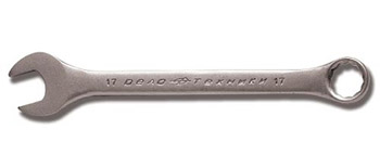 Классический вариант комбинированного гаечного ключа с рожковым профилем на одной стороне и двенадцатигранным накидным профилем на другой.