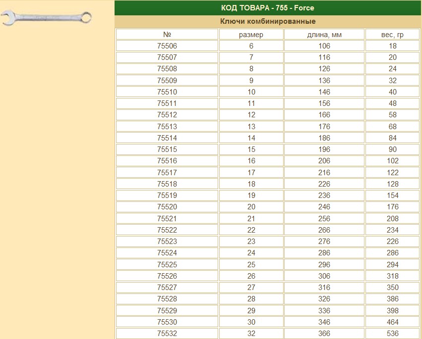 Ключ рожково-накидной 23мм. FORCE 12-гран.